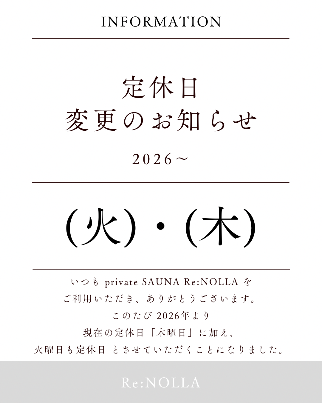 | 店舗名 | private SAUNA Re:NOLLA(リノーラ) |